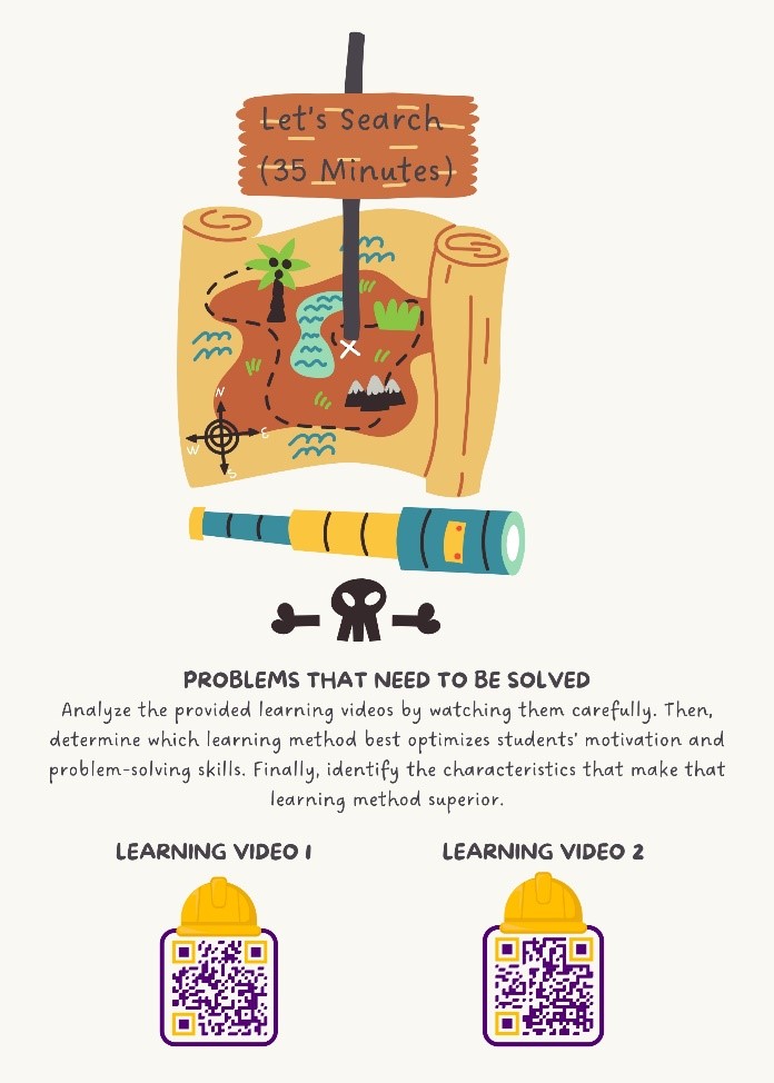 Incorporating ICT, the STEM-based blended lecture design utilizes QR codes, inspirational videos, and online test applications to enhance learning. QR codes, known for easy information conveyance and streamlined lecture design (Ahmed and Zaneldin, 2020; Wei et al., 2023), link to various data types, including learning videos and game-based online tests (Dan et al., 2024; Othman et al., 2023; Vuksanović et al., 2021). ICT or learning videos engage students, fostering interest and motivation, while game-based tests are employed to heighten students’ enthusiasm for learning (Baig and Yadegaridehkordi, 2023; Hainey et al., 2020; Hamad et al., 2024; Harper et al., 2024; Ibrahim et al., 2024; Love, 2023; Mendoza-Diaz et al., 2020; Thornton and Lammi, 2021).